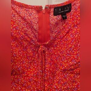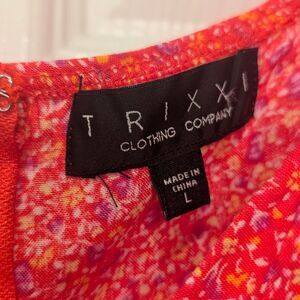 Trixxi Floral Pink Mini dress Sz L Short Puff Sleeve whimsical prairie Graduatio