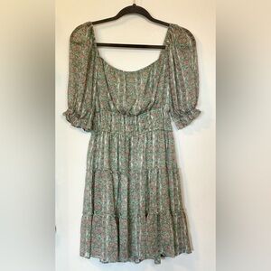 Trixxi Francesca’s Floral Green Smocked Cottagecore Boho Mini Dress- Size Large