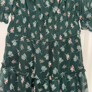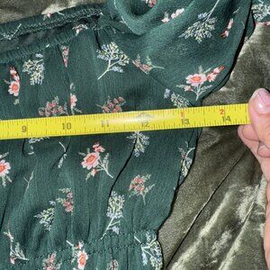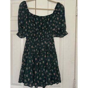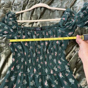 Trixxi Green Floral Babydoll Milkmaid Mini Dress Size Small Forest Fairy
