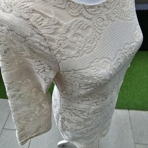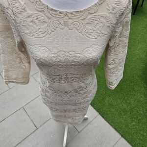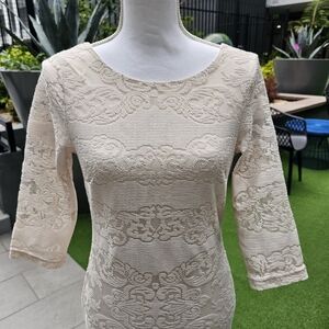 Trixxi ✦ Ivory Lace Occasion Dress ✦ Scoop Neck Open Back Sheer Sleeves Sz S