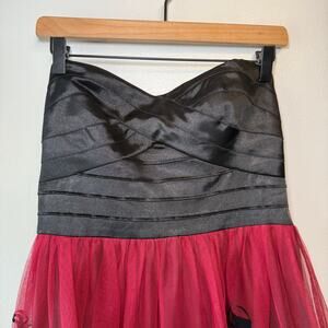 Trixxi Junior Floral Tulle Formal Strapless Dress Red Black Size 9