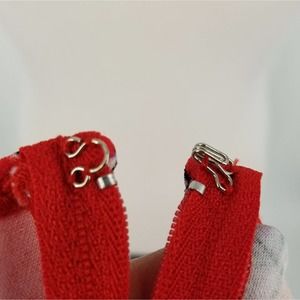. Back zipper; hook and eye