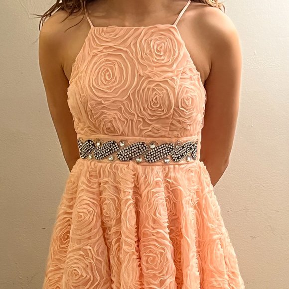 Trixxi Juniors’ Jewel Embellished Waist Short Dress Pink - Size 3 Prom / Sweet16 / Formal / Quinceañera