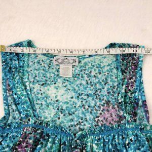 Trixxi Junior's Sleeveless Stretch Blue Purple Abstract Asymmetrical Blouse Sz S