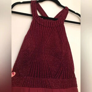 Trixxi Maroon Sparkly Fit and Flare Mini Dress Size 9. Junior’s Size 9 but would definitely fit a women’s medium. This brand is sold at Francesca’s. Excellent condition, only worn once. Perfect for a special occasion! Lined with tulle. Top half is very stretchy. Very pretty bow detail in the back. Back is strappy and beautiful. Comes with pads in top.