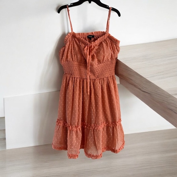 Trixxi Orange and Pink Tiered Sundress Spaghetti Strap Casual