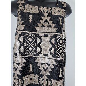 Trixxi Plus Black Gold Aztec Pattern Sequin Dress-SZ 20W