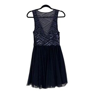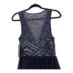 Trixxi Size 3 Sequin V-Neck Illusion Back Dress With Mesh Skirt New