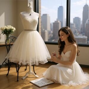 Trixxi Strapless Party Dress Ivory Full Mini Sized Ball Gown Style Tulle Prom 5