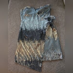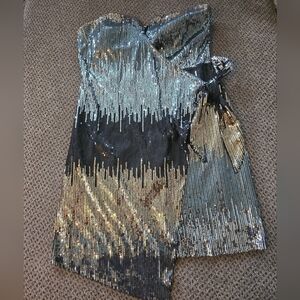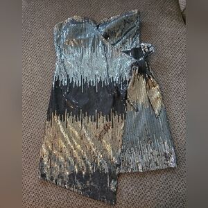 Trixxi Strapless Wrap Dress Sz L Womens Sequin Glitter Mini Y2k Club Feminine
