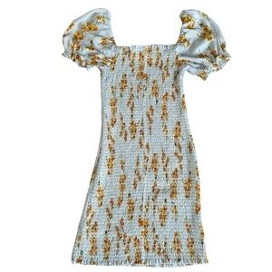 Trixxi Sunflower Orange Floral Print Bodycon Smocked Mini Dress Women's Size M