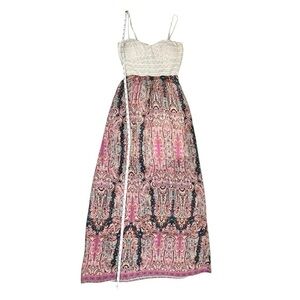 Trixxi Three Pink Hearts Sleeveless Open Back Maxi Dress. Size small. Dress has lining so it’s no see through. Preloved in good condition. When laying the dress flat I did notice there’s a pull, but would’ve never noticed it if I wasn’t listing the dress (see pics). Measurements are in pics, however additional measurements available upon request.
