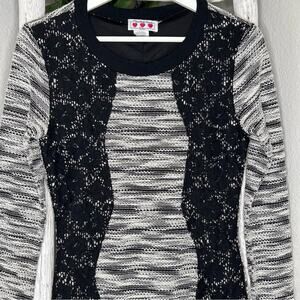 Trixxi Three Pink Hearts Sweater Dress Lace Panel Long Sleeve Knit Mini Med.