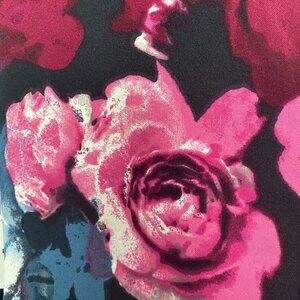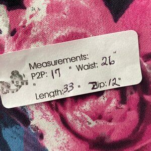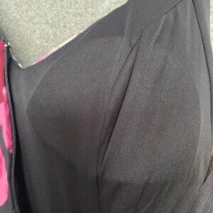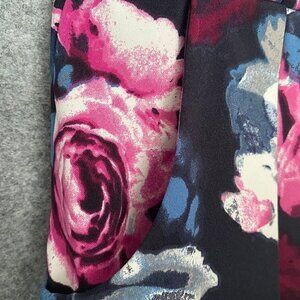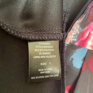 Trixxi V Neck Fit & Flare Floral Pleated Skirt Dress...Bodice V Neck front and back...Sleeveless...Zipper in the back for closure...hip pockets located on right & left sides...Skirt with 3" pleats...Beautiful Large floral pink white & blue print on black background...See photos for measurements & details...092622