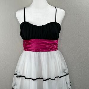 Trixxi White Black Pink Sparkle Glitter Sleeveless Tulle Party Mini Dress Jr Med