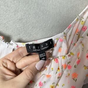 Trixxi White Floral Romper Flutter Sleave Pleated Womens Size M