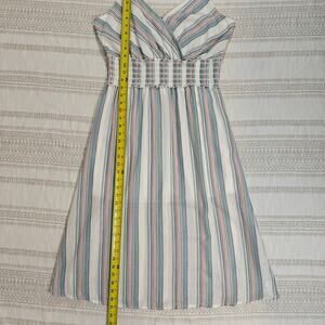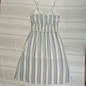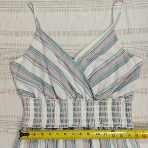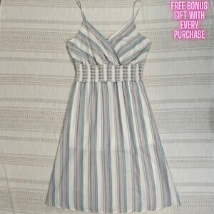 Lightweight and perfect for sunny days, this Trixxi dress features soft pastel stripes and a smocked waist that flatters every figure. Adjustable spaghetti straps and breathable fabric make it an easy pick for beach outings or brunch dates. Gently worn and in like-new condition!