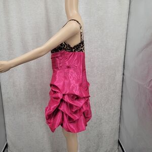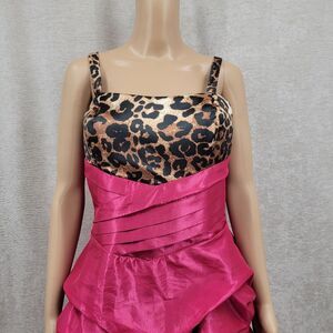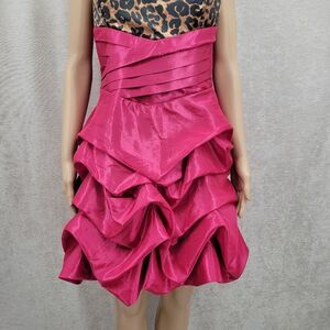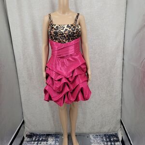 Trixxi Y2K Leopard Print and Hot Pink Ruffle Bubble Hem Teired Mini Dress Prom