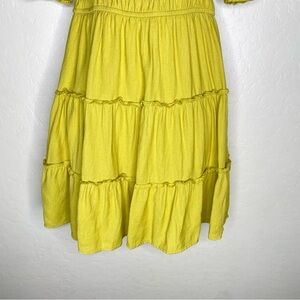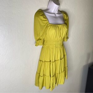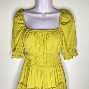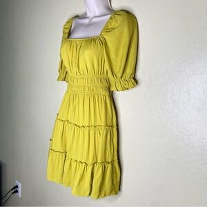 Trixxi Yellow Green Ruched Puff Sleeve Mini Boho Dress Size S Small