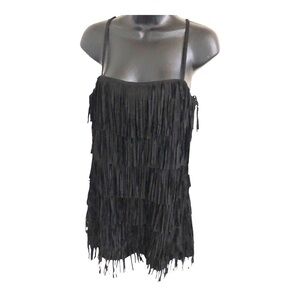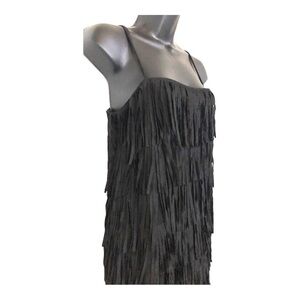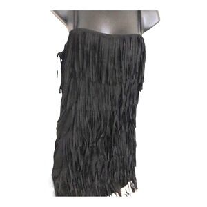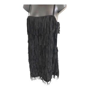Trixxi black faux suede fringe tassel flapper style short dress size small new