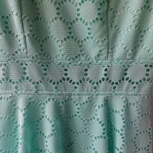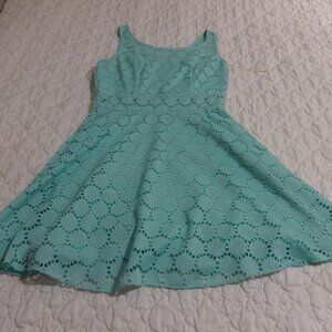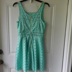 Trixxi mint green eyelet sundress size 7, a line, back zipper, mini, lined,