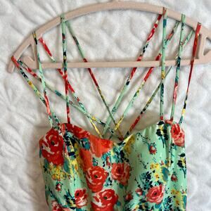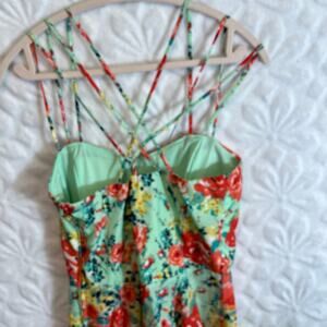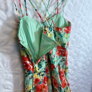 Trixxi mint green floral knee length dress multi spaghetti strap preowned
