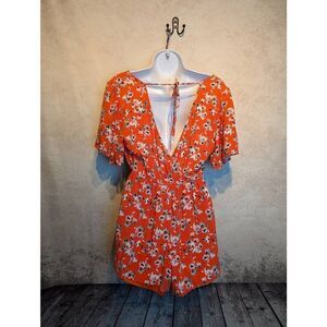 Trixxi backless off the shoulder romper size small. Elastic waist. Tie closure in the back. Excellent pre-owned condition.