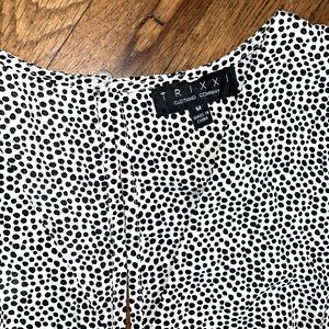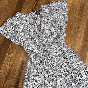 Trixxi white and black spotted faux wrap dress with flutter sleeves size medium