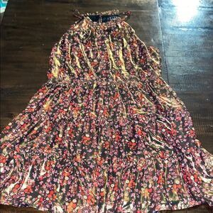 Trixxi Floral metallic Halter Dress with Gold and Pink Accents size large