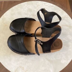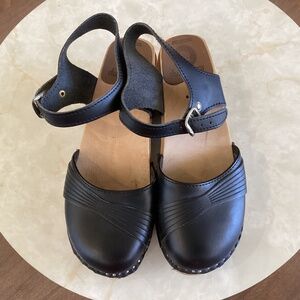 Black leather Troentorp Maryjane clogs from Sweden! In excellent used condition, hardly ever worn. These are comfy and stylish in a size 7 women’s. Someone needs these for the fall!