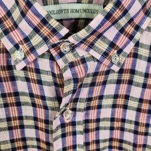 Troglodyte Homunculus Mens Long Sleeve Linen Plaid Button Down Shirt Size Medium