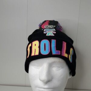 Troll Beanie Knit Hat Skullcap w/ Pom Pom Black Multi-Color NEW Trolls Winter