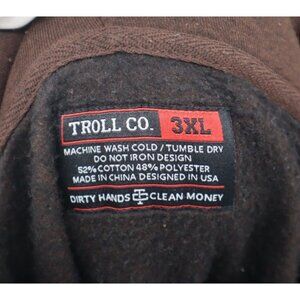 This Troll Co. 3XL hoodie combines comfort and durability with a stylish "Dirty Hands Clean Money" sleeve print. Its cotton-polyester blend ensures long-lasting wear and warmth.