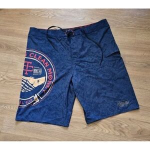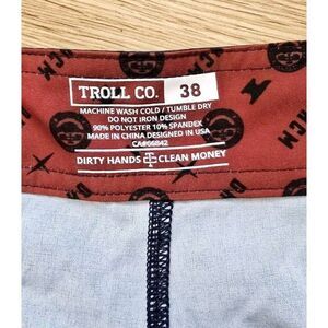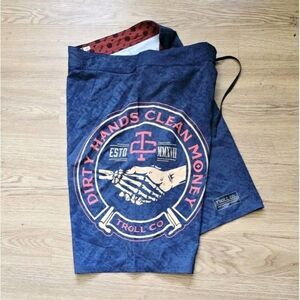 Troll Co. Haggler Boardshort Dirty Hands Clean Money Size 38 Blue Multi 10" Ins.