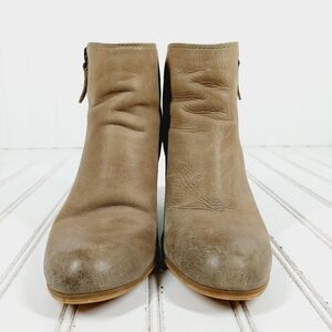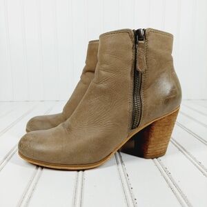 Trolley Brown Tan Leather Side Zippers Block Heel Ankle Boots H933