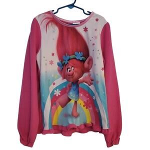 Gently preowned fleece top featuring Princess Poppy from Trolls. Girls size 10/12. This would be great to wear as a pajama top.