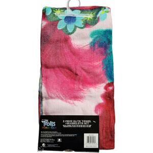 Trolls World Tour 2-Piece Bath Towel and Wash Cloth Set, 100% Soft Terry Cotton and Trolls World Tour Kids Bath and Beach Hooded Towel Wrap. Features Trolls World Tour characters Poppy, Branch and Tiny Diamond! The hooded towel is 24”x50”. It’s made of 100% cotton so washing and drying is a breeze for busy parents. Can be used for the Bath, pool and beach!
