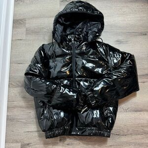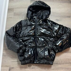 Trollz Puffer Jacket Patent Black Rainbow Pride Large 6ix9ine x Niki Minaj Shiny
