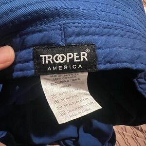 Stylish blue bucket hat by Trooper America. Perfect for casual outings.