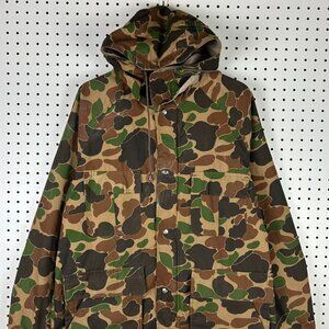Trophy Club Camo Vintage Anorak Jacket Medium 90s Chore Hunting Woodland w/ HOOD