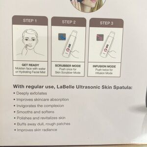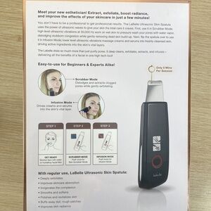 Trophy Skin LaBelle Ultrasonic Skin Spatula. Used for professional grade extraction, exfoliation, and infusion of serums. Used for the following purposes: