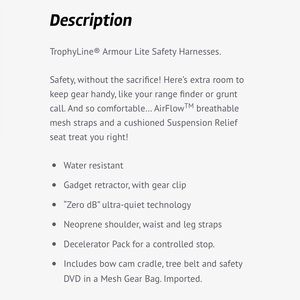 Safety, without the sacrifice! Here’s extra room to keep gear handy, like your range finder or grunt call. And so comfortable… AirFlowTM breathable mesh straps and a cushioned Suspension Relief seat treat you right!