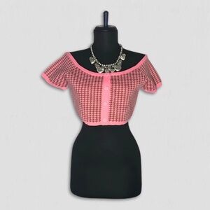 Tropic of C Revolve Cropped Knit Cardigan Pink Houndstooth Large