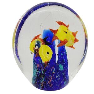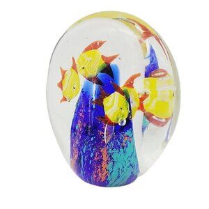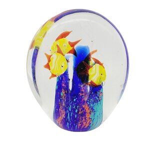 Tropical Art Glass Paperweight Oceanic Fish Scene Nautical Beachy Collectible