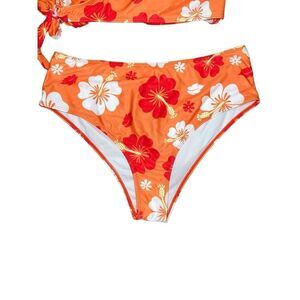Tropical Bikini Size 2XL Orange Floral Tie Knot High Waist Bottom Surplice Top D