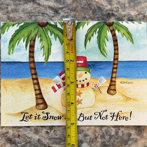 Celebrate the holidays with these tropical-themed Christmas cards. Featuring a cheerful snowman on a sunny beach, these cards bring a unique twist to traditional holiday greetings. Includes matching yellow envelopes for a complete set. Includes 31 cards and envelopes.