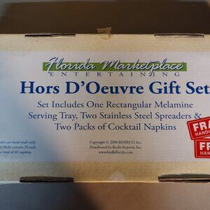 A still new in the box, tropical dinner party set from Florida Marketplace and made in 2006. Makes a wonderful gift.