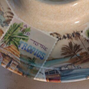 A large, 13" wide EcoBamboo tropical chip n dip tray, from Evergreen. Made in 2006, this is still new from the Coast to Coast series.