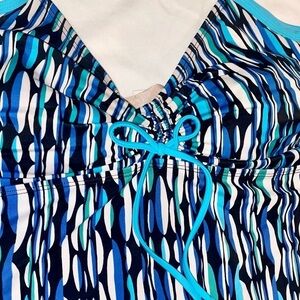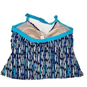Tropical Escape Halter Top Tankini Black, Blue and White Stripes Plus Size 20