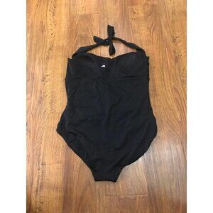 Tropical Escape size 16 black one piece swimsuit with flattering cinched waist